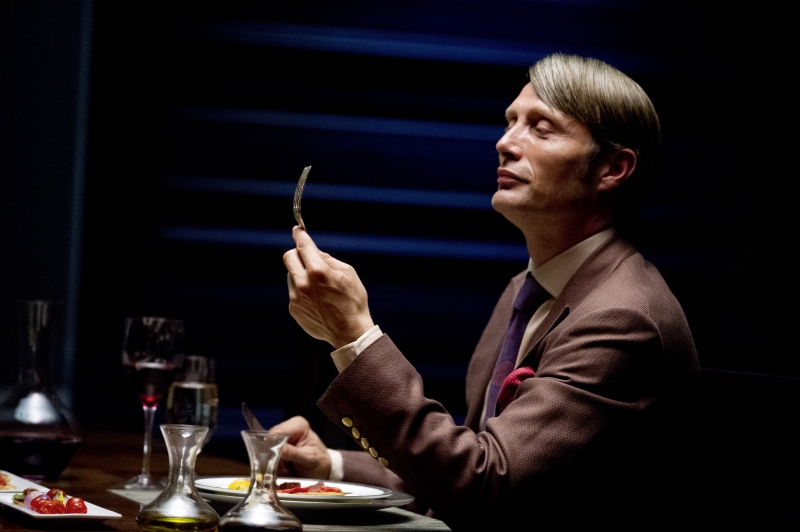 Diese Ästhetik und Zerrissenheit wird in den Speisen, die Lecter sich, der High Society, seinen Kollegen und anderen ihm wichtig erscheinenden Personen kredenzt, fortgeführt – die Food-Designerin Janice Poon und der Koch-Weltstar José Andrés (der sich im Featurette „A Taste For Killing“ wie ein kleines Kind freut) haben hier mit einer imposanten Kreativität Mahlzeiten auf den Teller gezaubert, dass man nur noch fasziniert staunen kann. Dass für die Organe nur menschenähnliche Tierorgane verwendet wurden und zubereitete „Organe“ essbare Attrappen sind (beispielsweise wurden die „Menschenzungen“, die Lecter als „Ziegenzungen“ präsentiert, aus Grieß hergestellt), ist dem Zuschauer hierbei zwar bewusst, doch trotzdem erschrickt man anhand der Tatsache, dass im Serienkontext eigentlich Menschenfleisch serviert wird, einem dennoch das Wasser im Munde zusammenläuft.