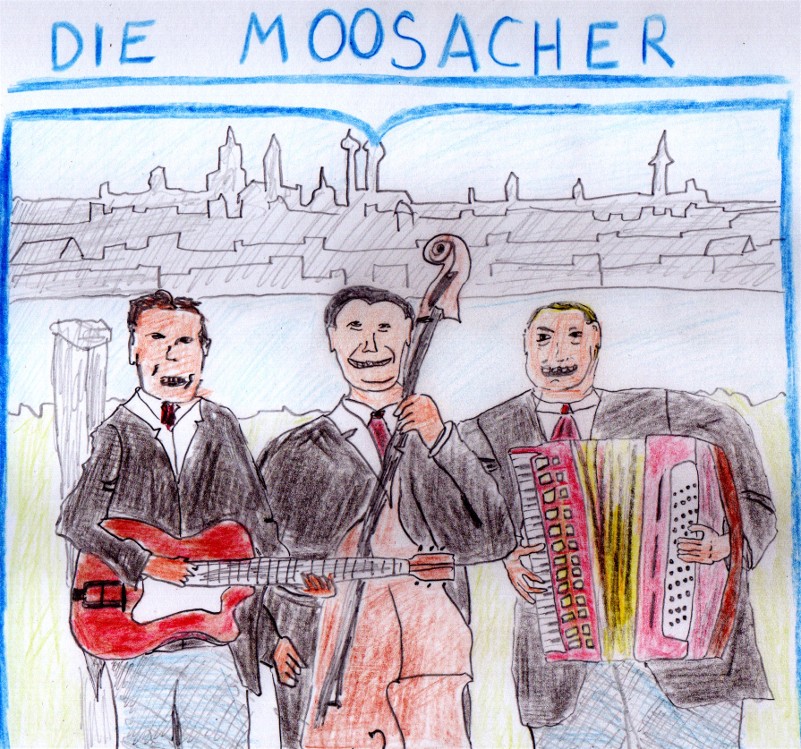 Aber die Moosacher sind keine reine Verteidigungskapelle gegen den Rock’n’Roll. Und so hat sich die Band gar zweimal zu einem Auslandseinsatz in die Staaten begeben, um dort deutsches Liedgut zu propagieren. Unterstützt wurden sie dabei von der volkstümlichen Guerillera Maria Hellwig, um jodelnd das Abendland zu retten.