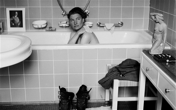 Für die amerikanische „Vogue“ verfasst Lee Miller Artikel und schießt Fotos. Unweit der Front, zwischen Lazaretten, Kriegshandlungen, befreiten Arealen und in Konzentrationslagern. Sie ist mit dabei, als Hitlers „Adlerhorst“ in Berchtesgaden eingenommen wird. Ein bekanntes Foto zeigt die scheinbar entspannte Lee Miller in Hitlers Badewanne sitzend.