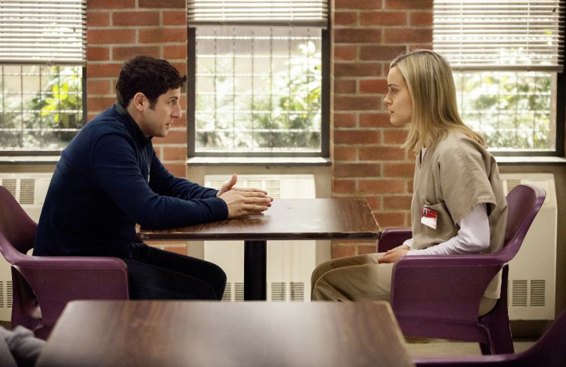 Aus Piper Kerman wird Piper Chapman (Taylor Schilling), aus Catherine wird Alex (Laura Prepon) und aus 2004 wird eine nicht näher spezifizierte Zeit, in der es Smartphones, Blogs und Twitter schon zu großer Popularität gebracht haben. Diese Technologien ermöglichen Pipers Verlobten Larry (Jason Biggs) als freier Journalist tätig zu sein, auch wenn es für ihn besser laufen könnte. Zusammen leben sie ein modernes Leben, das einem nur allzu bekannt vorkommt: Alles kann, nichts muss. Dass Piper ins Gefängnis muss, ist der Familie und den Freunden schon länger bekannt, doch trotzdem ist es ein tiefer Einschnitt, als sie ihre Strafe Realität wird.