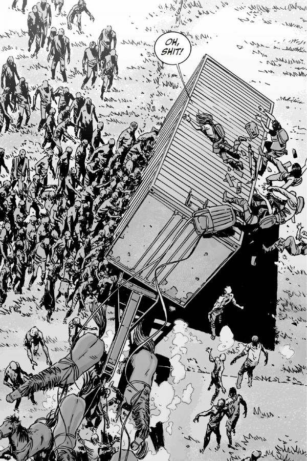 Es ist Robert Kirkman, den Zeichnern und Filmschaffenden hoch anzurechnen, dass auch nach zweiundzwanzig Bänden, beziehungsweise fünf TV-Staffeln, das Handlungseis auf dem sich sämtliche Protagonisten bewegen, verdammt dünn ist und alles möglich scheint. Selbst ein Fortbestand ohne etablierte Hauptfiguren.