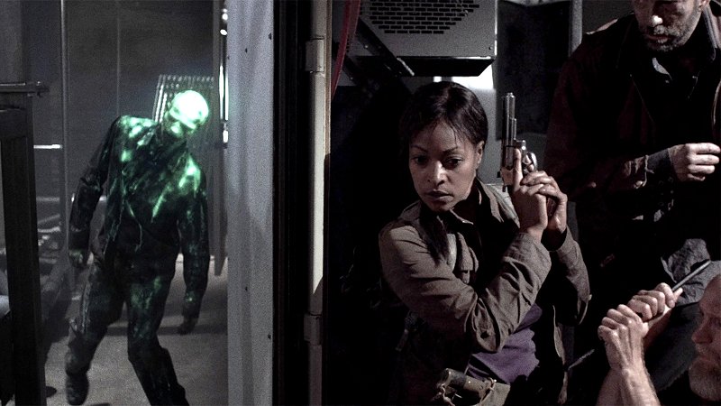 phy, der das Medikament verträgt, Zombiebisse absorbiert und später von den wandelnden Toten nicht behelligt wird, sie gar manipulieren kann. Vorerst gelingt ihm in Begleitung von Lt. Mark Hammond die Flucht aus der Militärbasis, die gerade von Untoten überrannt wird. Sie stoßen auf eine Gruppe Zivilisten, angeführt von dem kampferprobten Nationalgardisten Sgt. Charles Garnett und der dunkelhäutigen Amazone Roberta Warren (sagt da jemand Michonne? Nein, Roberta hat kein Samuraischwert dabei, nur eine Machete manchmal. Metal eben), die sich fortan um Murphy, den möglichen Retter der Menschheit kümmern müssen.