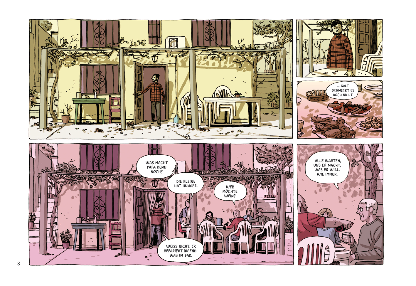 Die zuweilen beinahe monochromen, in entsättigten Farbtönen gehaltenen Panels, die mitunter auch über ganze Bildsequenzen wortlos bleiben, zeichnen einen melancholischen Stimmungsraum, der absolut großartig mit der langsamen und ruhigen Erzählweise Paco Rocas und der von Trauer, Schmerz und Nostalgie geprägten Handlung korreliert. Gegenwart und Vergangenheit sind in „La casa“ auch bildlich eng miteinander verknüpft. Sprünge zwischen Gegenwart und Erinnerung sind farblich markiert und auch die Perspektive sowie zeitliche Einordnung in die Retrospektive finden durch die Farben eine Unterscheidung.