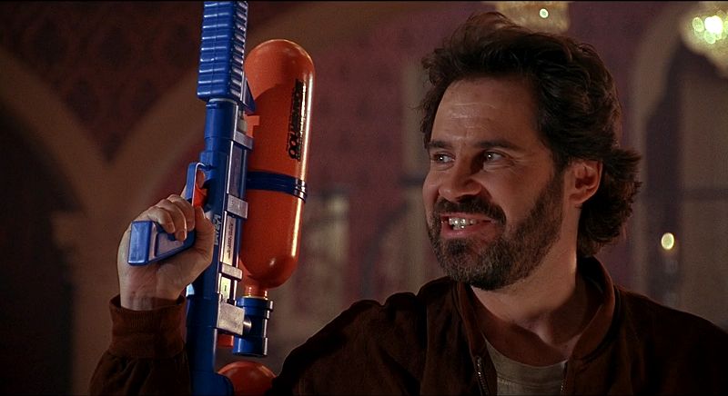 in. Bekommen hat man Dennis Miller. Einen in den USA angesagten Stand Up Comedian („Saturday Night Live“) mit der Ausstrahlung eines behördlichen Buchhalters, der sich als Fliesenleger versucht. Der Mann ist kein Schauspieler, zudem einer der undankbaren Sorte, die ganz offensichtlich keine Lust hat auf das hat, was er gerade ziemlich schlecht verrichtet.