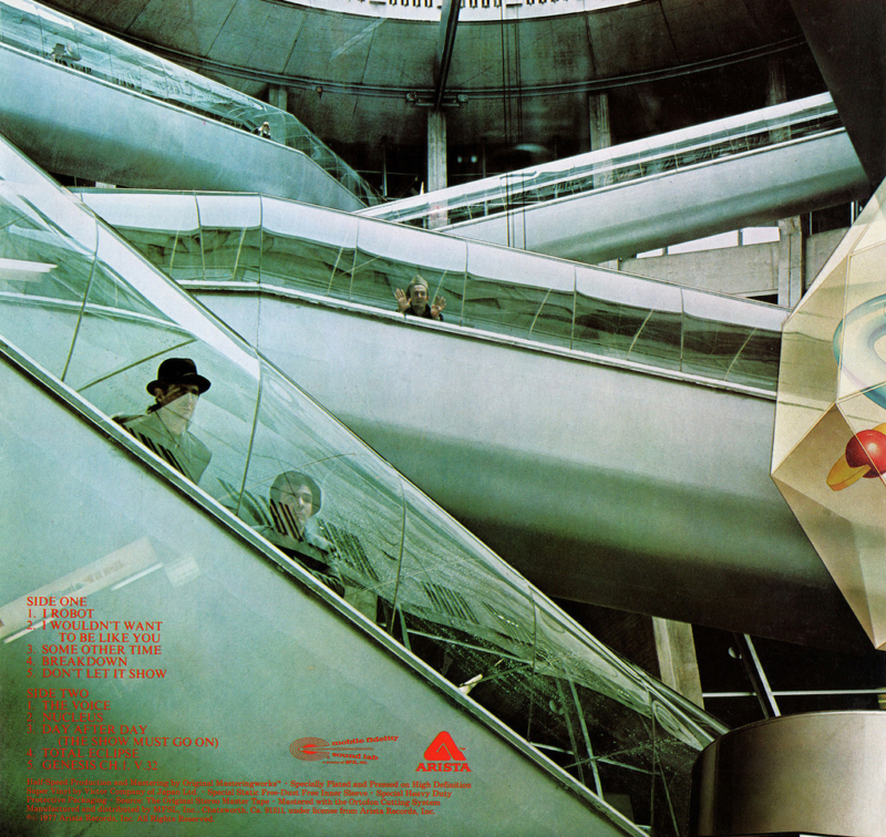 Das Cover von I Robot gehört sicherlich nicht zu den besten Covern seiner Ära, doch es besitzt eine gewisse ikonographische Wiedererkennbarkeit. Es stammt aus der berühmten Cover-Schmiede Hipgnosis, damals bestehend aus dem Trio Storm Thorgerson, Aubrey Powell und Peter Christopherson, der später mit der Band COIL in diversen Kreisen berühmt werden sollte (und den man auf der Vorderseite lachend in der Mitte des Bildes sehen kann). Das Cover zeigt grafisch zusammengefügte Aufnahmen des recht bekannten Verbindungs-Hubs auf dem Charles-de-Gaulle-Flughafen in Paris.