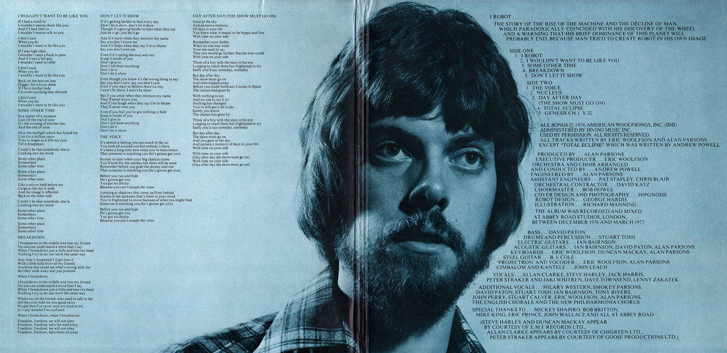 Ich halte I Robot für eines der besten Alben, die jemals aufgenommen wurden. Für jedermann ist diese Musik sicherlich nicht. Wer sich ausschließlich für Musiker begeistert, die gerne in der eigenen Kotze aufwachen, wird The Alan Parsons Project ohnehin nie wertschätzen. Doch wer nuancierten Sound begehrt, angereichert durch großartige Grooves und ausgefallene Ideen, virtuose Beherrschung von Instrumenten und vielfältigen Gesang, der kommt auch an dieser Platte nicht vorbei.