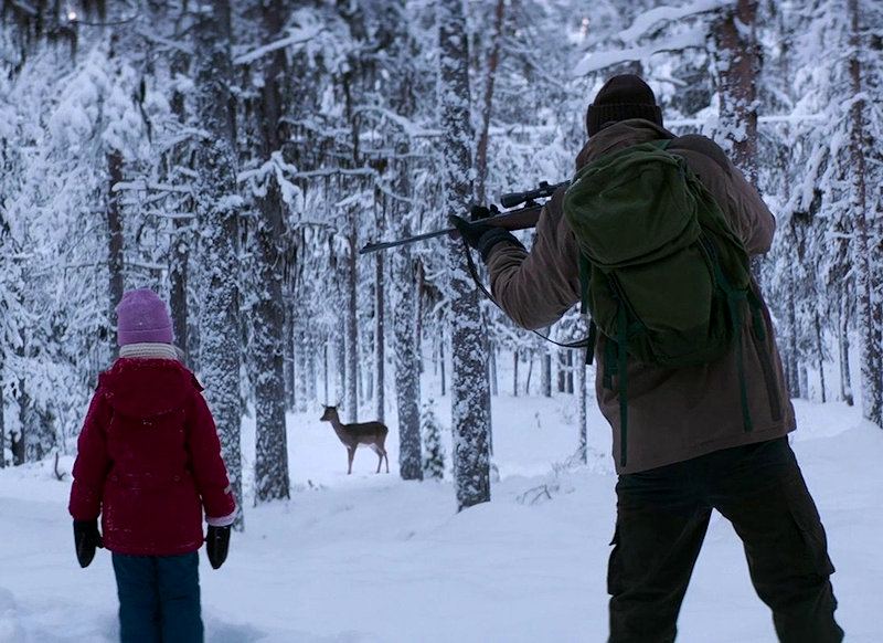 „Thelma“ beginnt mit einer meisterhaft inszenierten Szene. Ein Vater, augenscheinlich ein Jäger, geht mit seiner kleinen Tochter über einen zugefrorenen See Richtung Wald. Dort sehen die Beiden in einiger Entfernung ein Reh. Der Vater lädt sein Gewehr und zielt. Doch nicht auf das Reh, sondern auf den Rücken seiner Tochter. Es vergehen scheinbar endlose Sekunden, in denen der Mann versucht abzudrücken. Er kann es nicht. Schnitt.