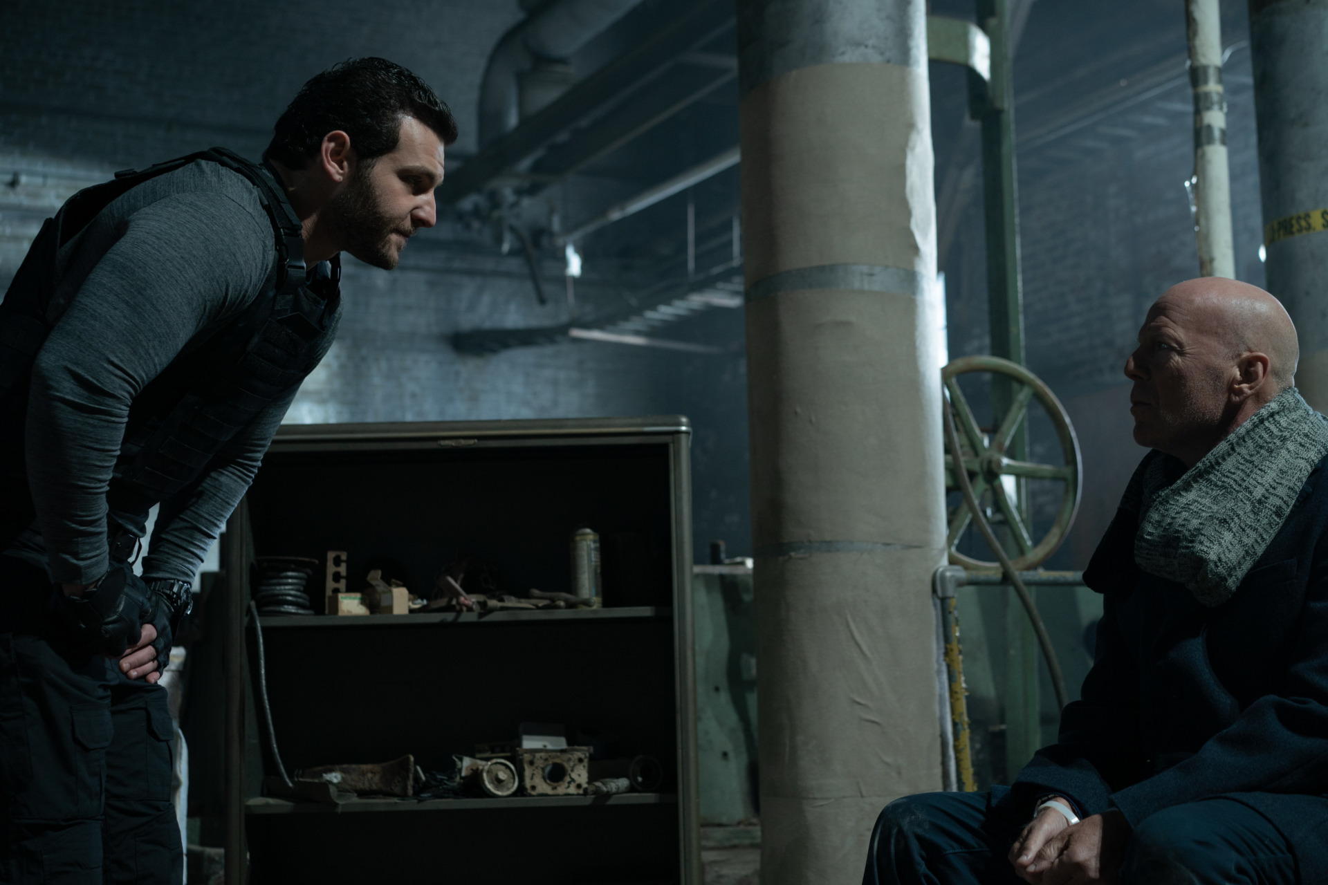 In einem verlassenen Fabrikkomplex treffen nun Millers kleines Team und der Prediger aufeinander. Chalmers Tochter wird als Geisel gehalten und der Prediger tut das, was sein Name vermuten lässt: er schwafelt von einer neuen Weltordnung und natürlich könne, nur er diese herstellen. Soweit so bekannt, allerdings kaufe ich Rizzuto eher einen beleidigten Schwiegersohn ab, als einen globalen Terroristen. Die restliche Hälfte des Filmes zeigt ein lustloses Versteckspiel in der alten Fabrik, mit einigen Gefechten und noch lustloseren Dialogen. Am Ende des Tages ist Bruce Willis der Held und rettet die Welt, allerdings nicht mit der Waffe, so viel sei verraten.