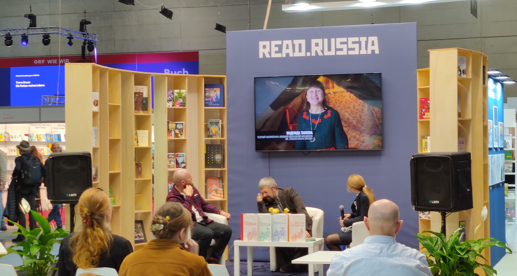 Als Gastland fungiert dieses Jahr “Russland” wo neben zeitgenössischer auch Literaturklassiker nicht fehlen durfte. Aus Ermangelung von Kyrillisch-Kenntnissen konnte ich hier die Bücher nur anhand der Cover näher begutachten. Christine de Grancy hingegen präsentierte in Form eines schwebenden Tagebuches “Meine Wolgawelten”. Dabei folgte die Fotografin innerhalb von 10 Jahren immer wieder dem Strom und hielt mit ihrer Kamera Menschen und Stimmungen fest. Vor Ort stellten innerhalb des Messezeitraums einige Autorinnen und Autoren ihre Werke vor, darunter Jewgeni Wodalskin, Juri Buida oder Ljudmila Grigorjewa-Semiatizkaja.