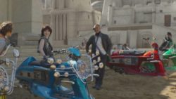 Eine der Dinge, die mich am meisten rausgerissen hat, waren jene Momente, die sich nicht nach Star Wars anfühlten, weil sie sich zu sehr an unserer Welt orientierten. Da wäre zum einen ein Linienflug, eine Metzgerei, aber am schlimmsten fiel es mir bei einer Jugend Bande auf, die Boba rekrutiert. Sie fahren auf schwebenden Bikes, die nach Vespas aussehen und jedes hat seine eigene Farbe. Klingt nach Power Rangers? Fühlt sich auch leider so an. Während andere Charaktere durch den Sand und Dreck des Wüstenplaneten gezeichnet sind, sehen diese Kids auch immer sauber aus, als wären sie gerade für ein Fotoshooting hergerichtet worden. Keine Ahnung man sich dabei gedacht hat.