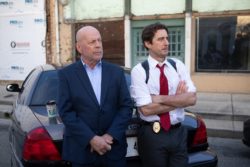 Devon Sawa ist manchen vielleicht noch aus “Final Destination” bekannt. Hier mimt er den harten, kettenrauchenden Draufgänger, der gerne mal die Fäuste fliegen lässt. Ist auch besser so, weil bei den schwachen Dialogen ist Reden gewiss nicht die zielführendste Methode. Vielleicht wurden die Sätze auch bewusst einfach gehalten, damit Bruce Willis mithalten kann. Wie nun bekannt ist, leidet der Action-Star unter Aphasie, welche unter anderem Sprachstörungen hervorruft. Nun, Willis war nie der Mann der vielen Worte, doch die letzten Filmbeteiligungen seinerseits waren leider nur mehr ein Graus, da die wenigen Sätze in bester Til Schweiger-Manier genuschelt wurden und die Mimik so träge erscheint, wie die Pünktlichkeitsstatistik der Deutschen Bahn.