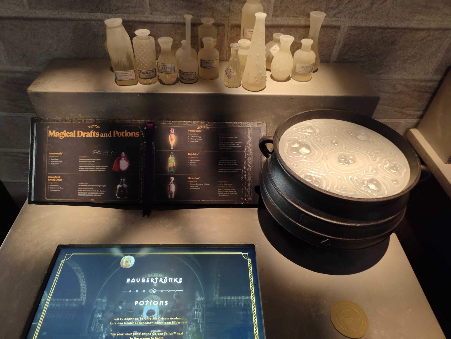 In weiteren Räumen werden verschiedene Zauberstäbe und -sprüche vorgestellt, es darf ein eigener Zaubertrank gebraut werden, Alraunen mögen umgetopft werden, Irrwichte entfesseln eure schlimmsten Alpträume und mittels Glaskugel offenbart sich die mögliche Zukunft.