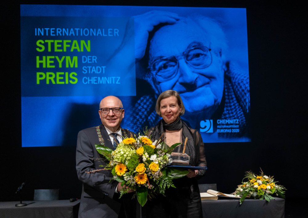 Oberbürgermeister Sven Schulze: „Mit dem Preis zeichnen wir Personen aus, die sich wie Stefan Heym kritisch mit ihrer Zeit auseinandersetzen, die widersprechen und Türen aufstoßen, die überraschende Blickwinkel eröffnen und mit Mut klare Position beziehen. Damit ehren wir einen großen Sohn unserer Stadt und die heutige Preisträgerin.“