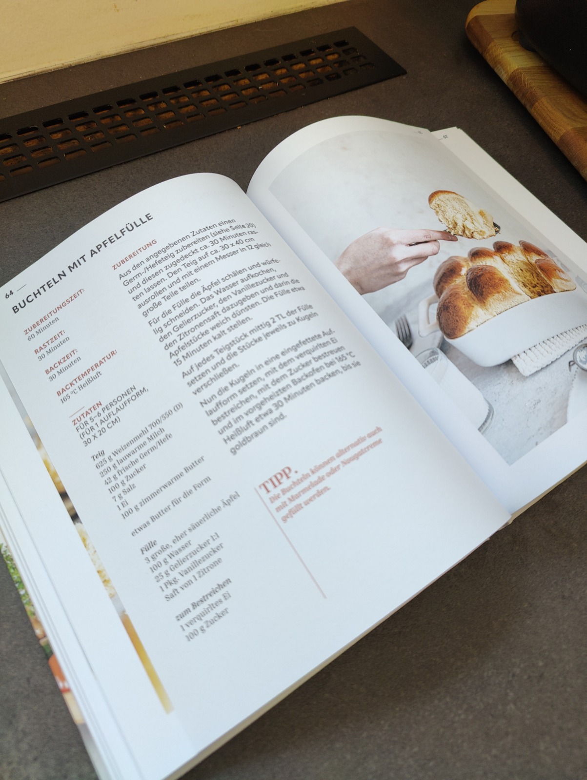 Im Eigenversuch haben wir den Pizzateig selbst gemacht und die Buchteln mit Apfelfülle. Selbst gemacht schmecken gerade solche beliebte Speisen nochmals um Längen besser, mit den vorliegenden Rezepten hat man quasi eine Erfolgsgarantie.