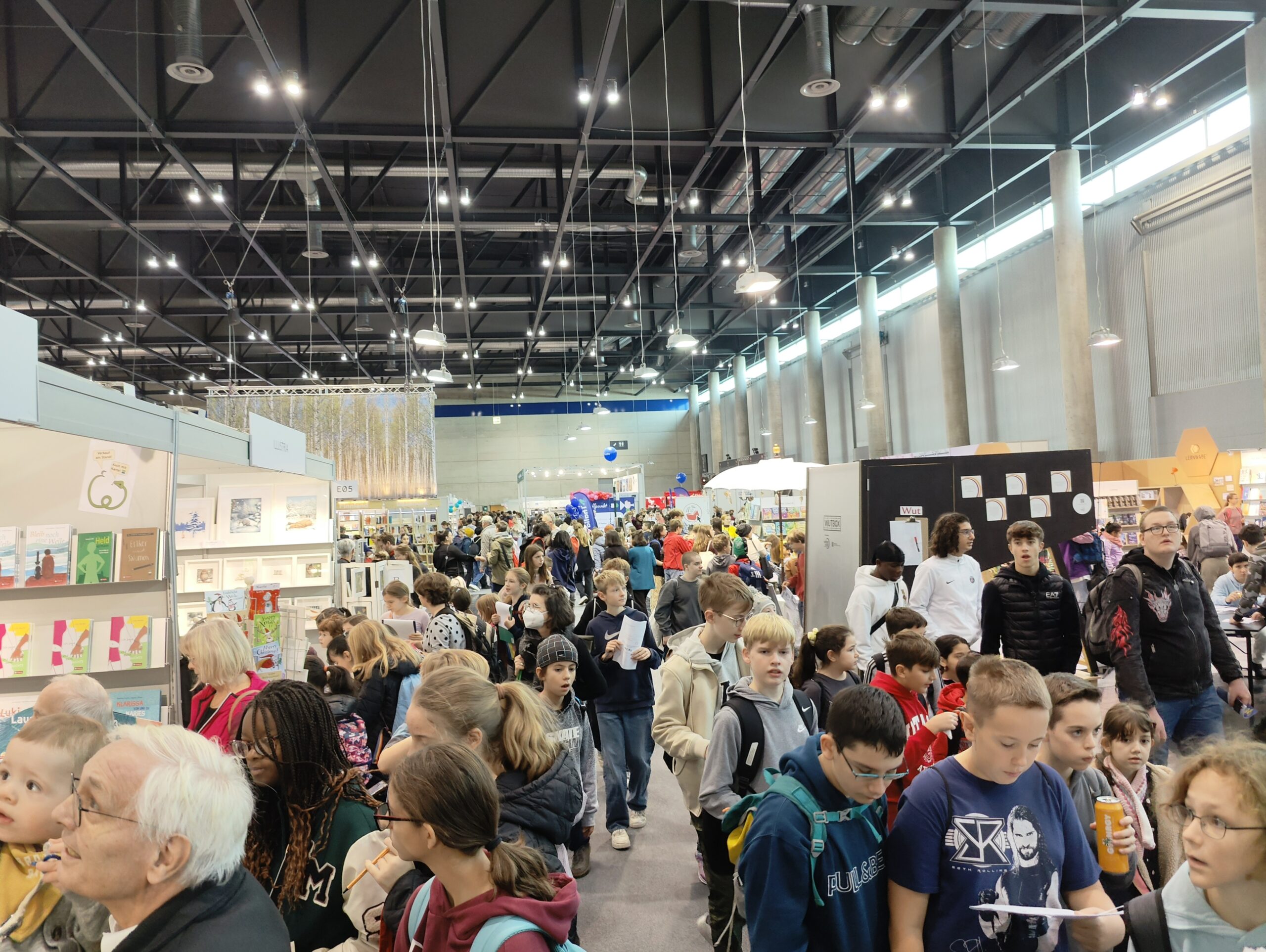 Am Vormittag des 9. November schoben sich die Schulklassen nur so durch die Reihen. Viele der Schüler*innen waren Zettel und Stifte ausgestattet, eine Rätselrallye war zu bewältigen. Während so mancher Aussteller morgens schon genervt erschien (oder einfach noch zu wenig Kaffee intus hatte), freuten sich andere über den regen Andrang. Auch die jungen Besucher*innen verweilten bei manchen Ständen dann doch länger als geplant, weil das ein oder andere Buch die Aufmerksamkeit weckte.