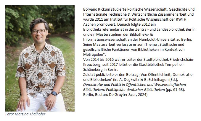 Dr. Rickum: Sowas ist bei uns in Tempelhof-Schöneberg bisher noch nicht vorgekommen. Ich denke, ein gemeinschaftliches Verständnis bei den Mitarbeiter_innen über unsere Aufgabe als Öffentliche Bibliothek ist ganz wichtig. Wir sind keiner parteipolitischen Strömung verpflichtet aber wir sind auch nicht frei von Werten. In diesem Bewusstsein sollte nicht nur unsere Bestandsarbeit, sondern auch die Zusammenstellung unserer Programmarbeit erfolgen. Allgemein ist es sehr hilfreich, wenn eine politisch beschlossene Bibliotheksstrategie vorliegt, aus deren Zielen deutlich ein demokratiefördender bzw. bewahrender Charakter spricht. Auf diese kann man dann in solchen Szenarien verweisen.