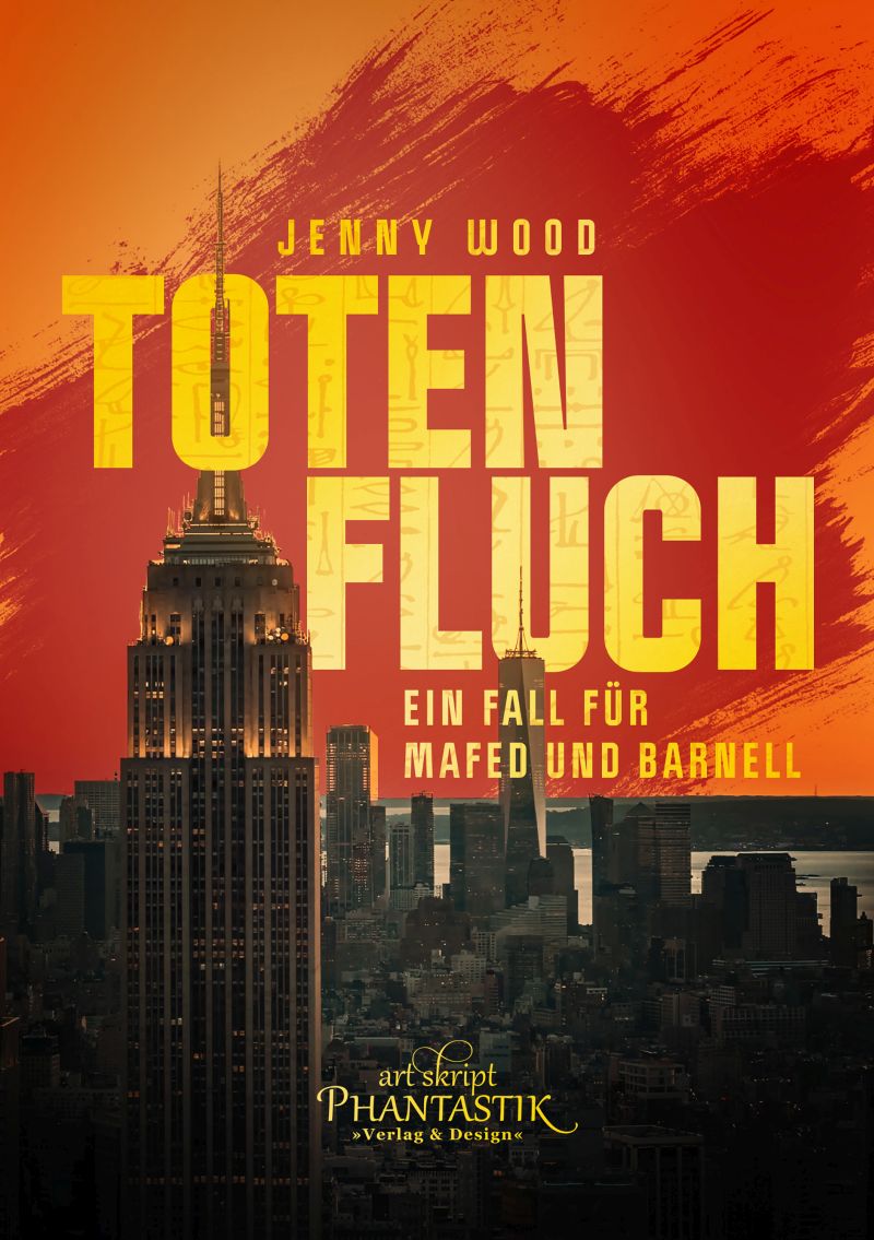 Der Art Skript Phantastik Verlag erkannte dieses Potenzial und brachte die „Kemet“ Reihe heraus. Zuerst erschienen die Kurzgeschichten „Totensand“, „Totenpfade“ und „Totengeister“ von Jenny Wood und schließlich die Romane „Totenfluch“, „Path into Duat“, „Totennacht“, „Trail into Heka“ und „Deadend at Heliopolis“. Die Romane schrieben Jenny Wood und Melanie Vogltanz teilweise allein oder gemeinsam. Der hier besprochene Auftakt der Roman-Reihe „Totenfluch“ stammt aus der Feder von Jenny Wood und knüpft an die Kurzgeschichten „Totenpfade“ und „Totengeister“ an, Der Roman gilt als dritter Fall für Barnell und Mafed, den Totengott und Rechtsmediziner und den NYPD Detective. Er kann problemlos ohne die Kenntnis der Kurzgeschichten gelesen werden.